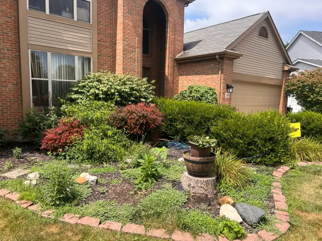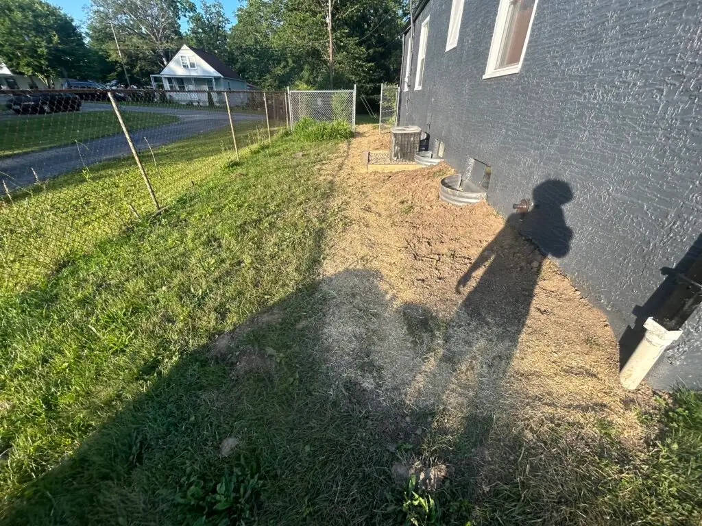 This clients yard was struggling to grow grass and was crowded with weeds. We went to work and transformed this yard by pulling the weeds, adding fresh topsoil, seed, fertilizer, and hay. In a few weeks time the grass grew back thicker and stronger than ever before.